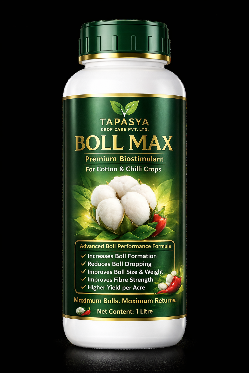 It supports better boll formation, reduces boll shedding, improves boll size and fibre strength, and helps maximize overall yield and crop performance.
